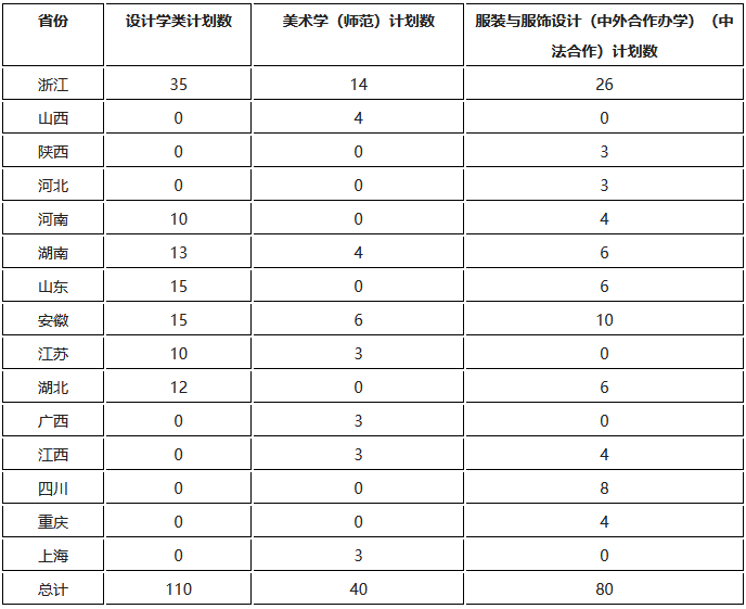 招生省份及各省招生计划如下: